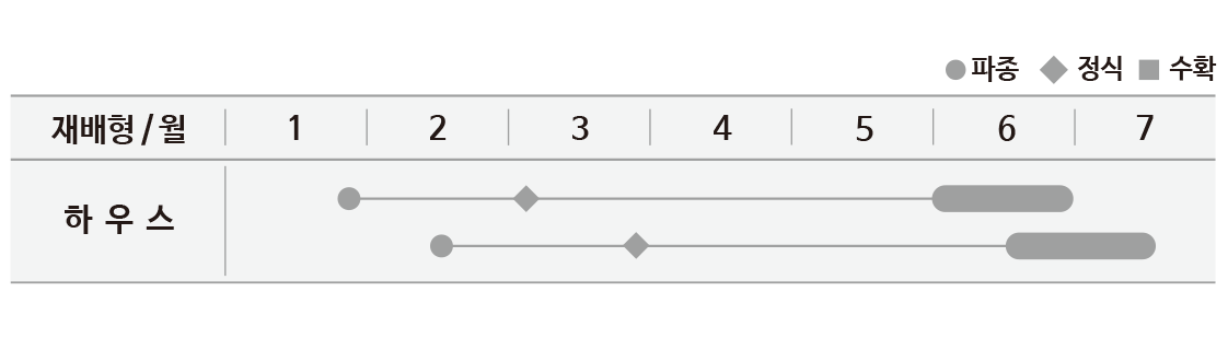 ① 지나친 고온재배는 육질악변과의 원인이 될 수 있으므로 유의하십시오. ② 본 포장 준비 시 지나친 건조를 피하고 수분을 고루 공급하여 뿌리가 깊게 뻗어 나갈 수 있도록 유도하십시오. ③ 수분 및 영양분의 급격한 변화보다는 꾸준한 양,수분 관리로 초세를 관리하시면 상품성 및 수량성을 높일 수 있습니다. ④ 후기까지 초세가 강하므로 수확 15일에는 가능한 한 관수를 줄이시기 바랍니다. ⑤ 재배시 기상, 온도, 토양, 수분, 비료등이 적절치 못할 경우 생리장해(급시들음, 기형과, 순멎이, 열과, 조롱박과, 공동과, 피수박등)가 발생할 수 있으니 재배시 필히 농촌진흥청 "작물재배기술 수박재배"를 숙지하신 후 재배하십시오. |