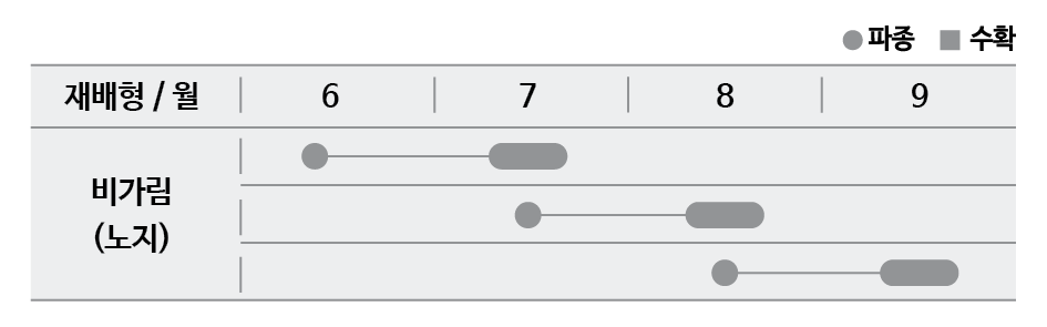 ① 파종 시기를 너무 앞당기거나 수확 적기를 지나면 추대가 발생할 수 있으므로 재배 적기표를 반드시 준수해야 합니다. ② 질소 비료 과다 시 잎이 연약해지고 품질이 떨어질 수 있으므로 시비 관리에 유의해야 합니다. ③ 고온 다습 조건에서 노균병, 무름병등이 많이 발생할 수 있으므로 재배 관리에 유의해야 합니다. |